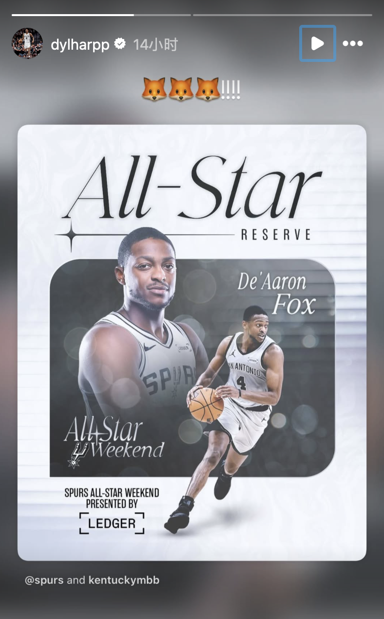 狐狸全明星!迪伦-哈珀祝贺达龙-福克斯递补进入全明星