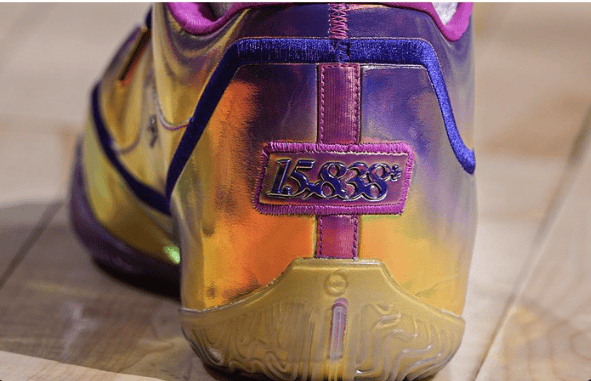 纪录收割机!詹姆斯今日身穿印有“15838+”字样球鞋打比赛