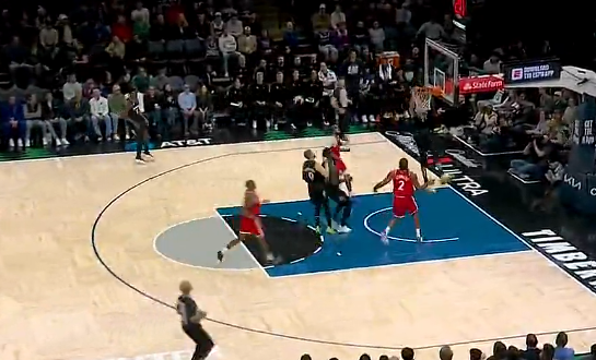 戈贝尔反击空接双手暴扣,森林狼一波9-0将分差追到个位数