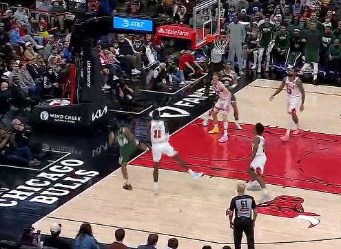 托马斯干拔后仰中投不中,雄鹿首节32-30领先公牛