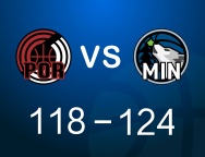 [赛后]森林狼124-118开拓者,麦克丹尼尔斯29分6板5冒,克林根11分15板5助