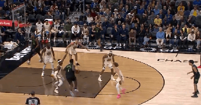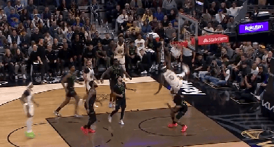 穆迪干拔三分强投命中追到3分,勇士目前三分20中2