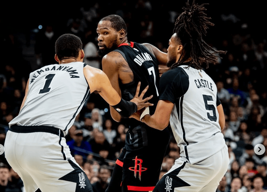 马刺145-120战胜火箭,文班亚马对阵杜兰特的战绩来到5胜3负