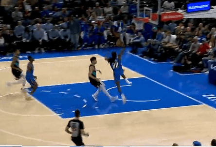 华莱士抢断反击一条龙,起飞单臂滑翔飞扣可惜扣飞