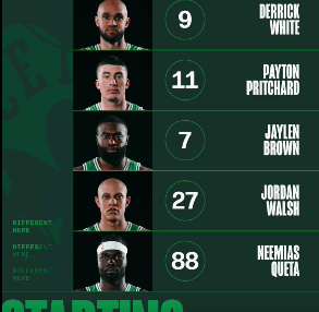 凯尔特人首发:怀特、普里查德、布朗、沃尔什、克塔