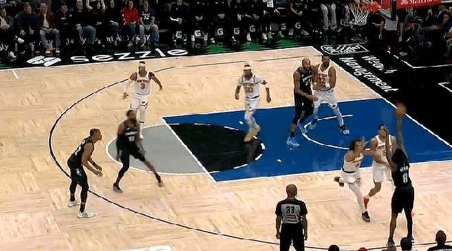 海兰德接球三分强投命中,森林狼领先尼克斯14分
