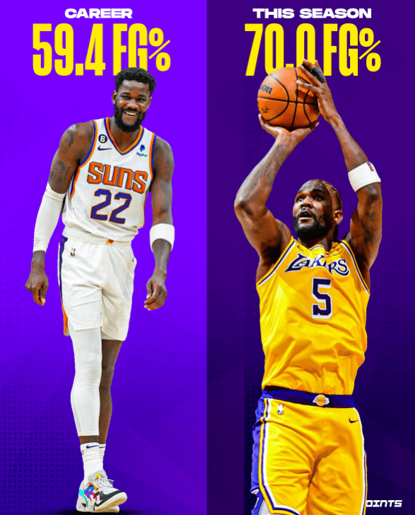湖人自媒体:艾顿本赛季投篮命中率70%,整个生涯59.4%