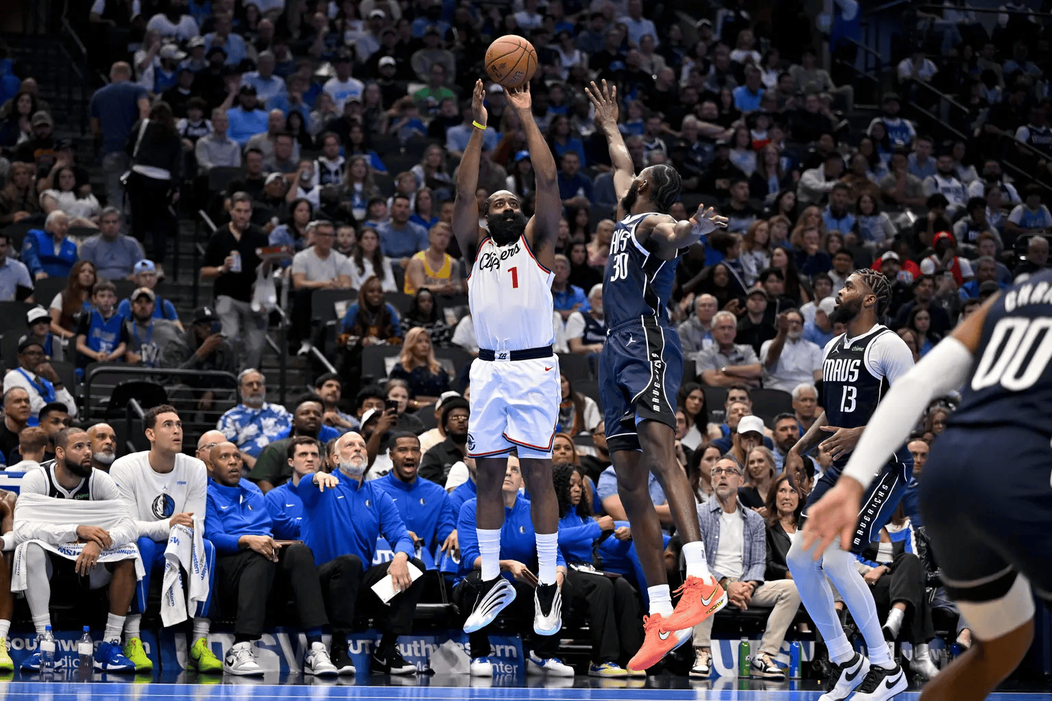 真硬!哈登弧顶三分坚决出手空心命中,个人独砍34分