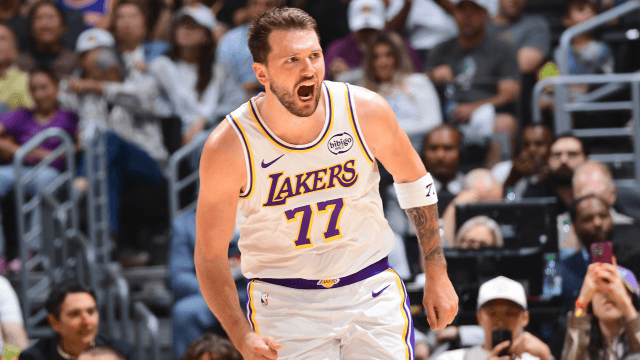 篮筐之上!湖人官方晒詹姆斯东契奇等人的扣篮照与球迷分享