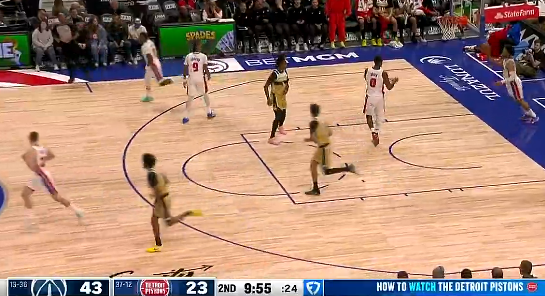 莱利低手上篮打进,奇才领先活塞到20分分差