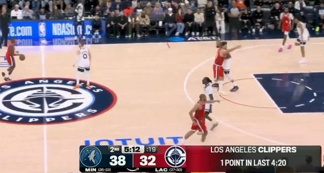 快船4分钟不进球仅罚球拿1分,第二节32-38落后森林狼