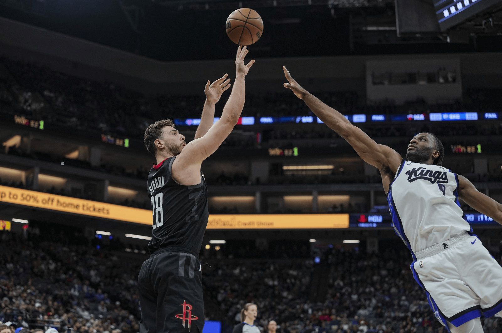 申京篮下造成犯规两罚不中,国王还剩5分钟领先火箭2分叫停