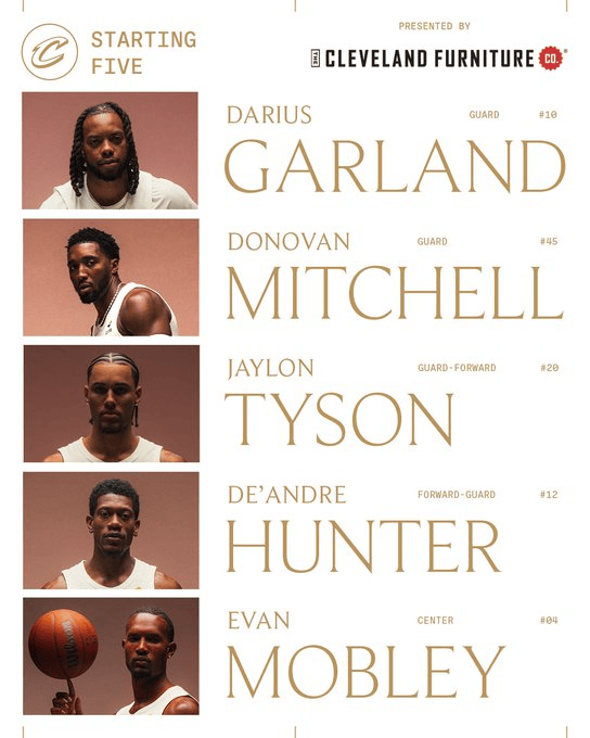 骑士首发:米切尔、泰森、莫布利、亨特、加兰