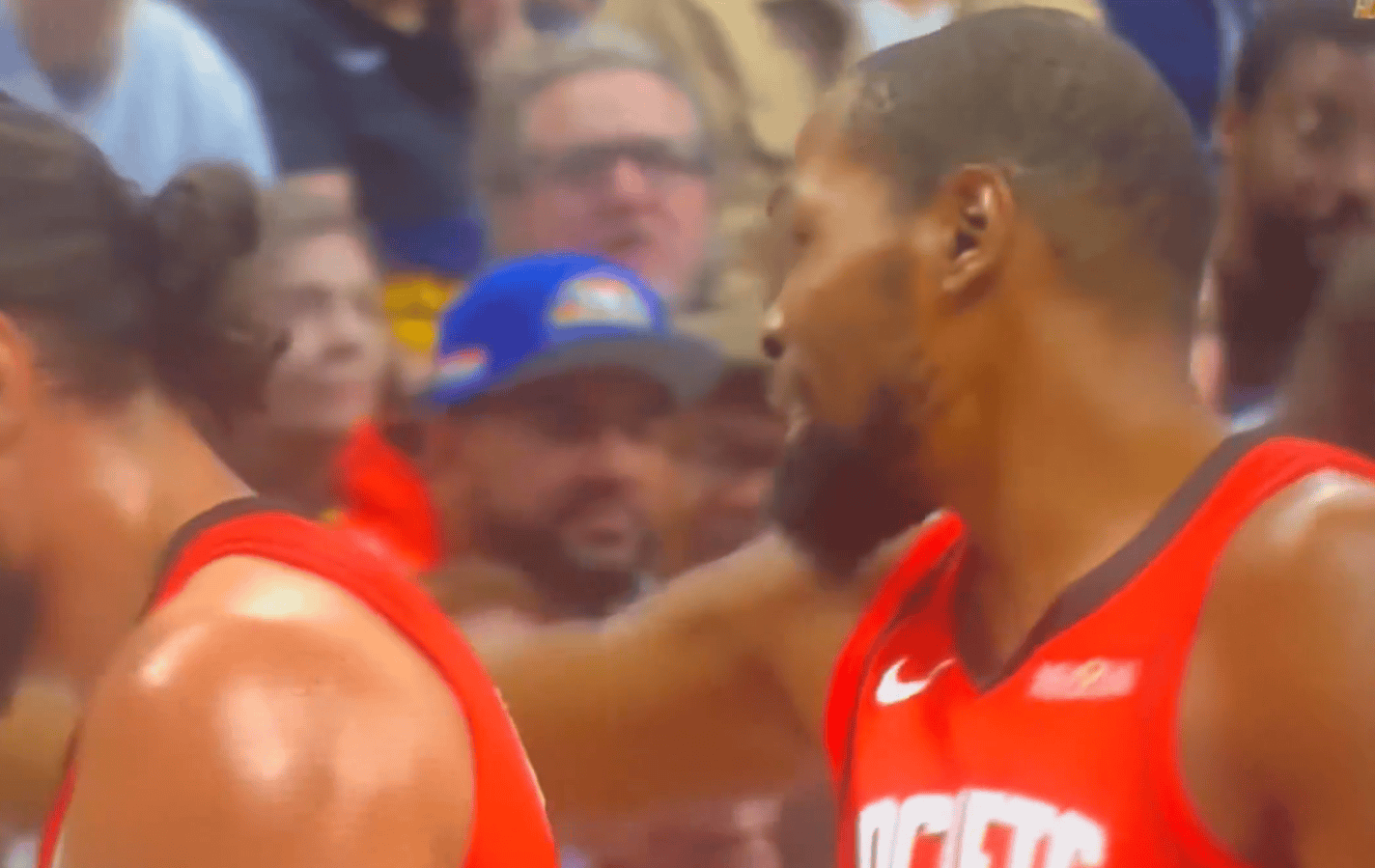 杜兰特对掘金替补席某人喊道:赶紧他X的给我坐下,怂包