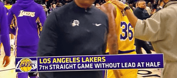 湖人已经连续7场比赛在上半场结束时落后,前6场为3胜3负
