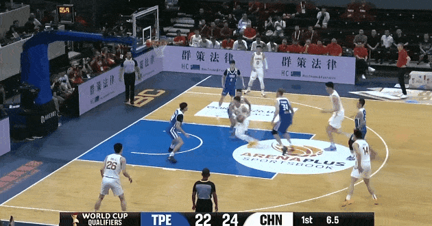 朱俊龙底角压哨三分投进,中国男篮首节27-22领先中国台北