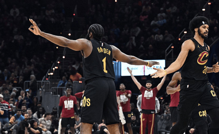 哈登加盟骑士后三战场均19.3分5.3板8.7助,三分命中率42.1%