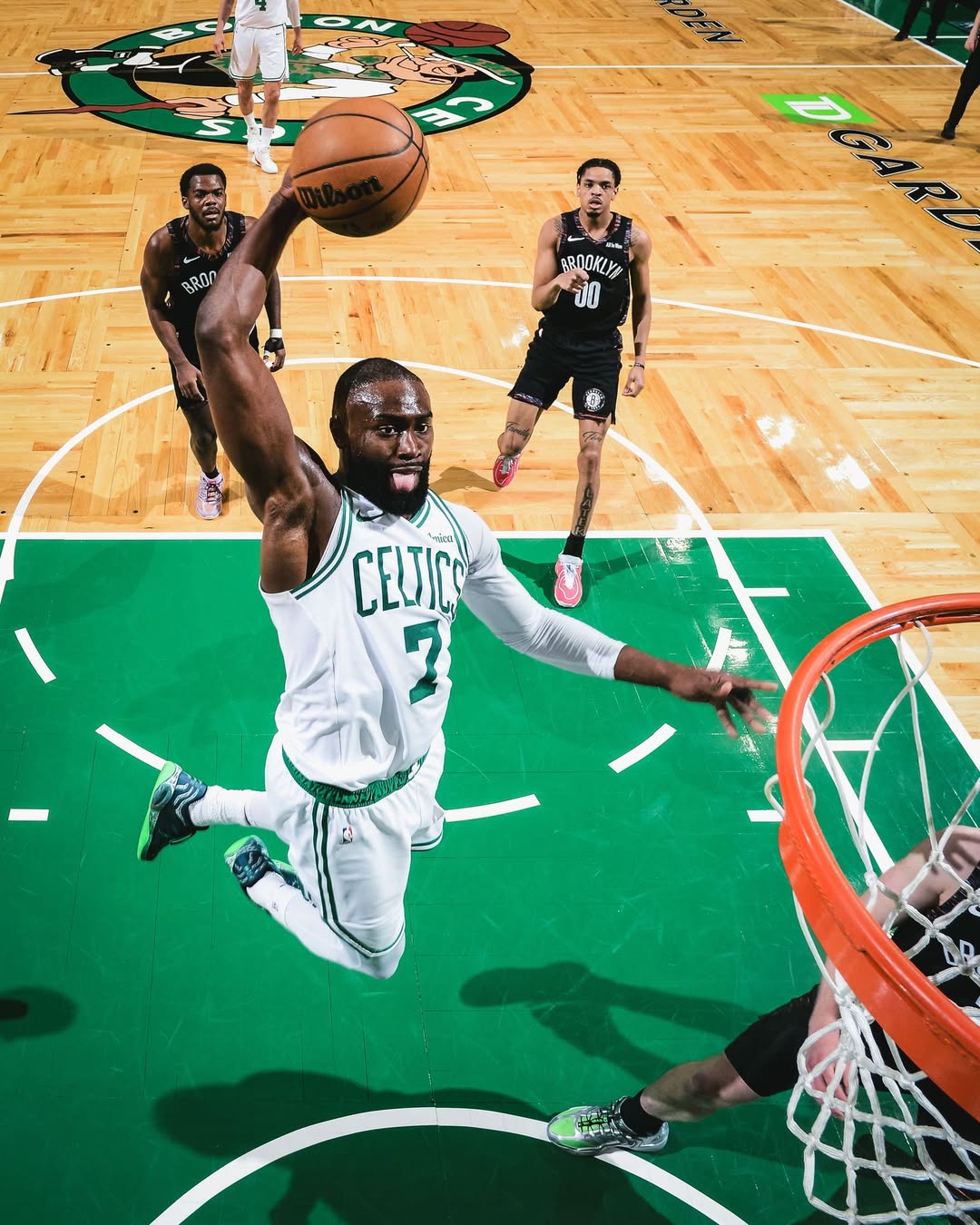 帮主的吐舌!凯尔特人官方晒杰伦-布朗的扣篮照:美如画