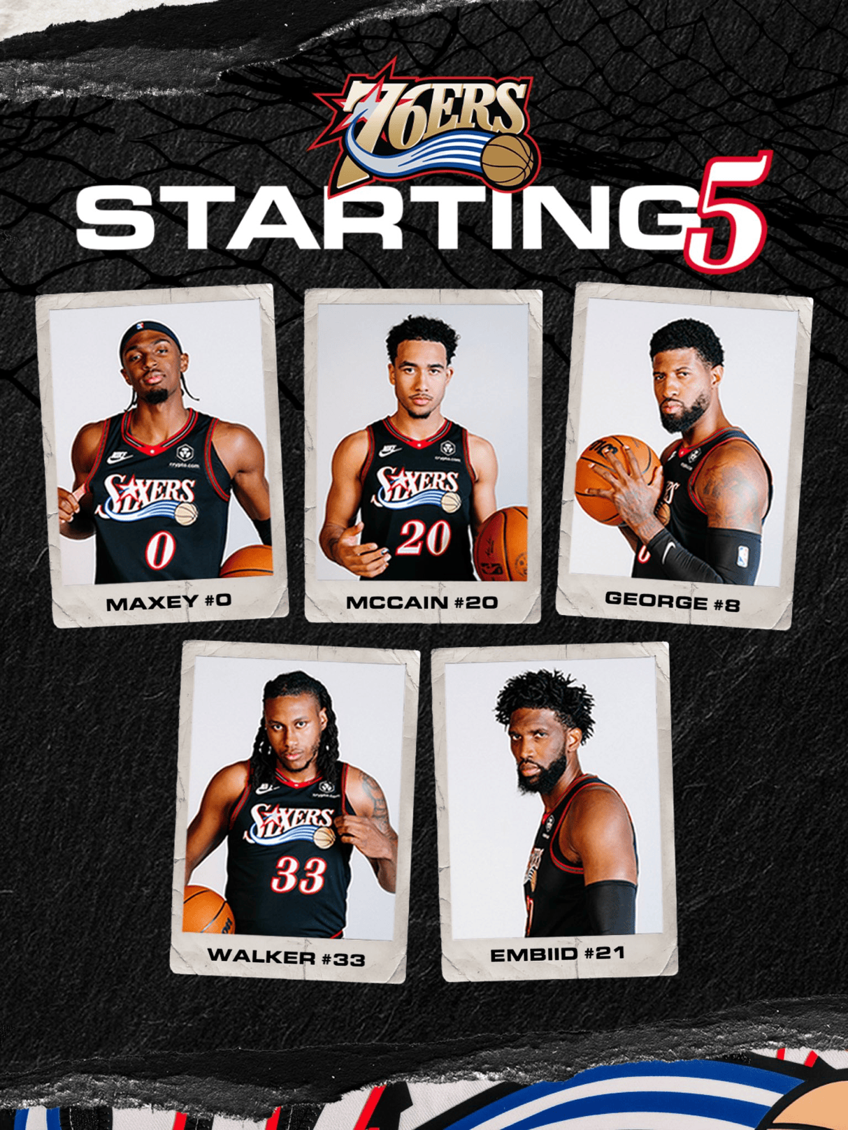 76人首发:马克西、麦凯恩、保罗-乔治、沃克、恩比德