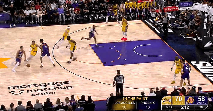 詹姆斯内线双手重扣,湖人禁区得分36-16领先太阳