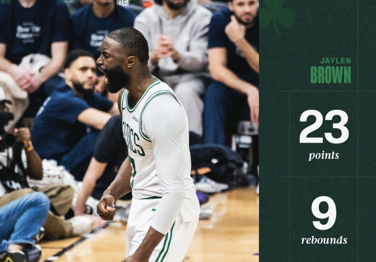 凯尔特人官方:打出明星级准三双的杰伦-布朗当选为本场最佳