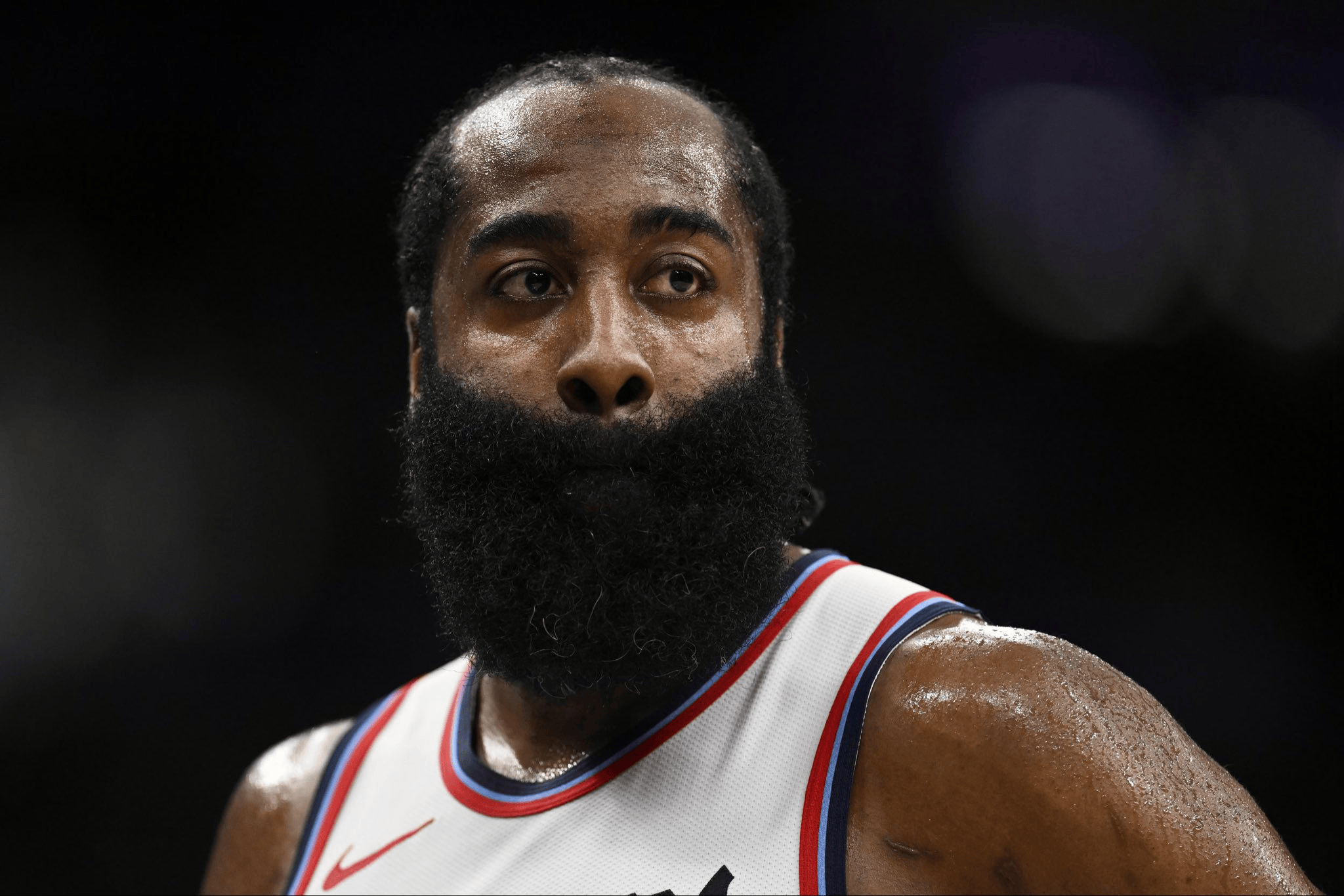 哈登全场出战40分钟,18中7得到22分3板7助攻3抢断