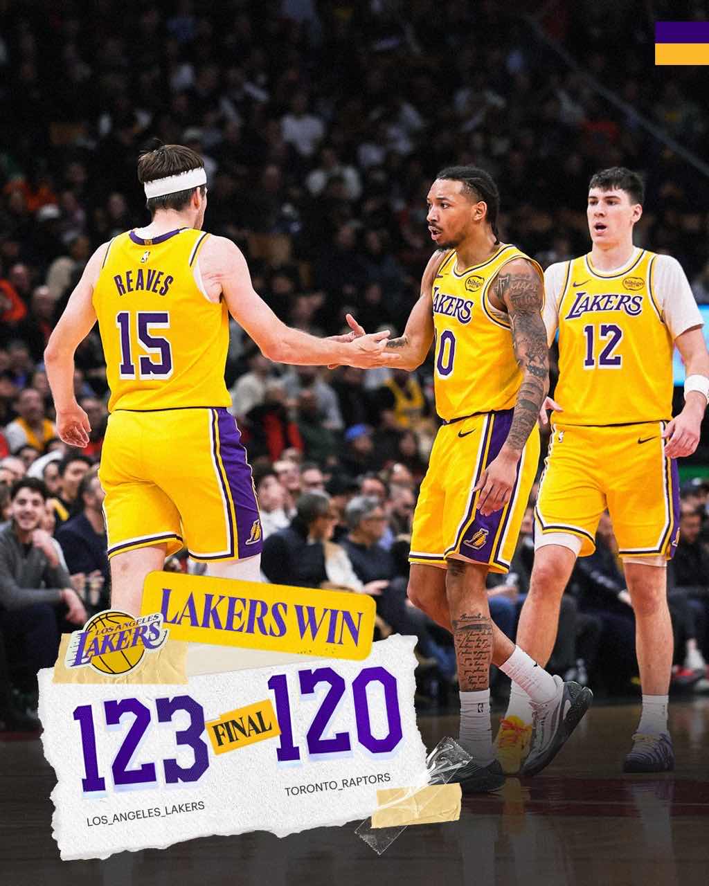 湖人社媒分享本场比赛获胜海报,常规赛战绩来到16胜5负