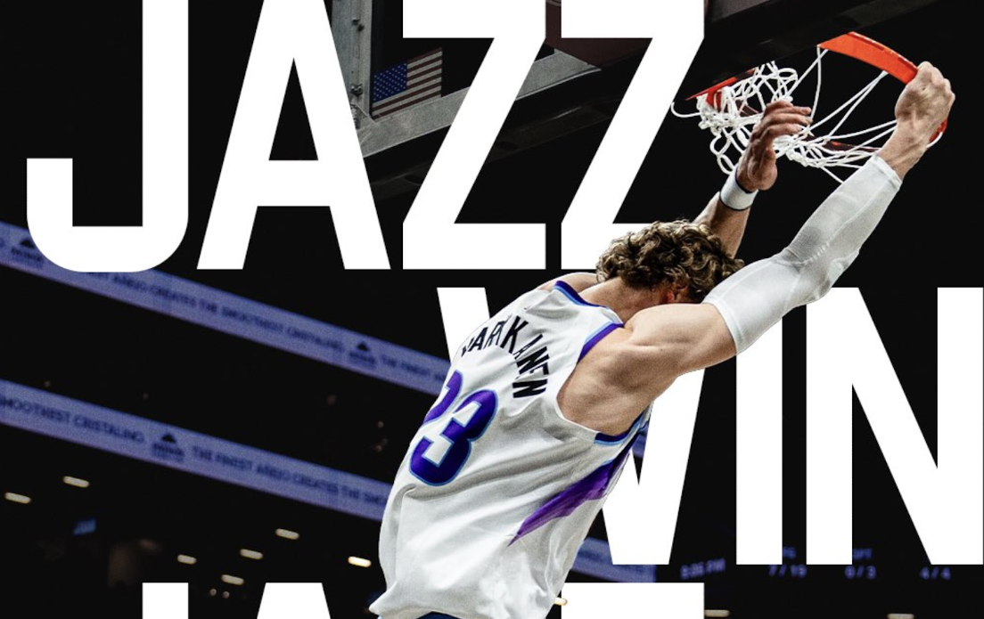 逆转篮网!爵士官媒晒马尔卡宁扣篮海报照:爵士赢啦
