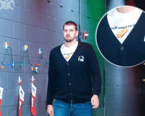约基奇赛前身穿Taco Bell的T恤,随后在比赛中狂砍50+大三双