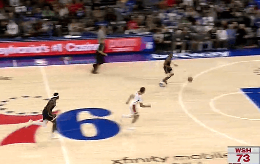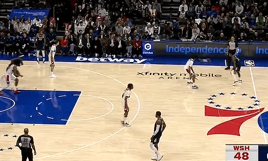 斯潘塞运球到外线,迎着哈珀后撤步三分出手投进3+1