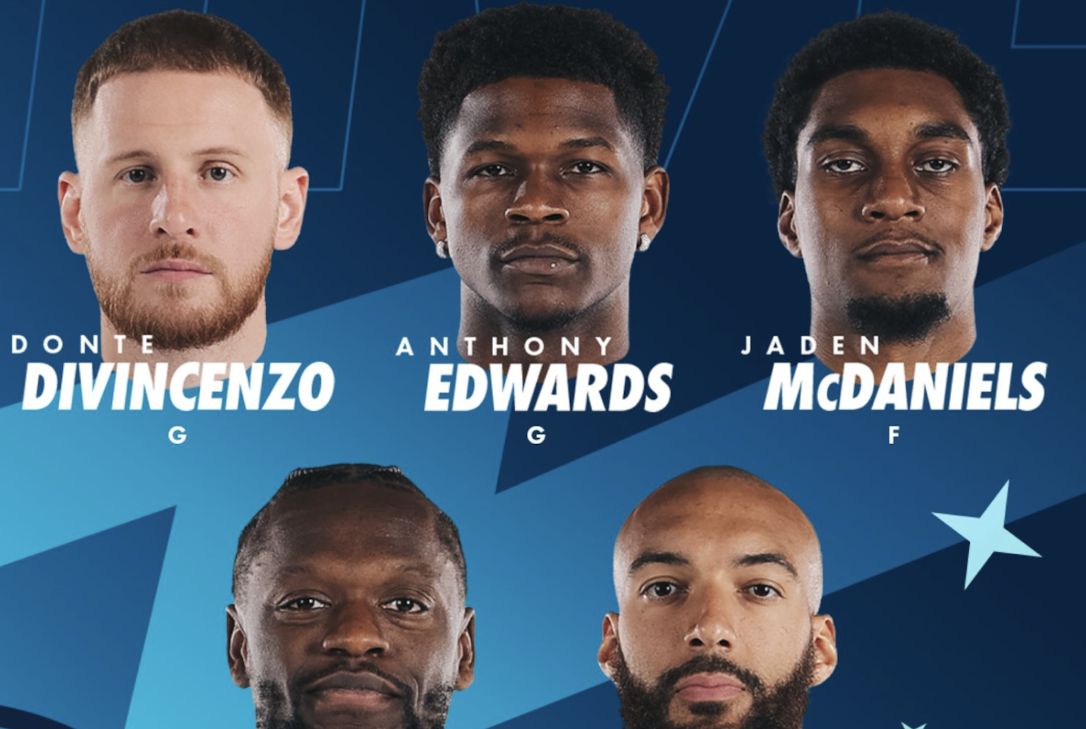 森林狼首发:迪温琴佐、爱德华兹、麦丹、兰德尔、戈贝尔