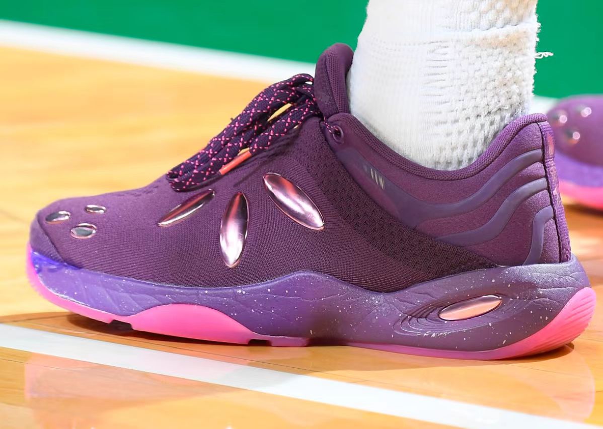 布朗穿着紫粉色个人品牌球鞋,砍下42分4篮板4助攻