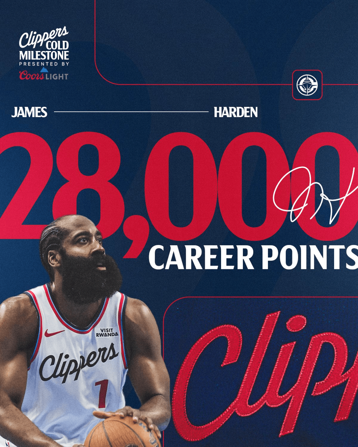 追逐伟大!快船官媒晒詹姆斯-哈登海报照:28000分达成!