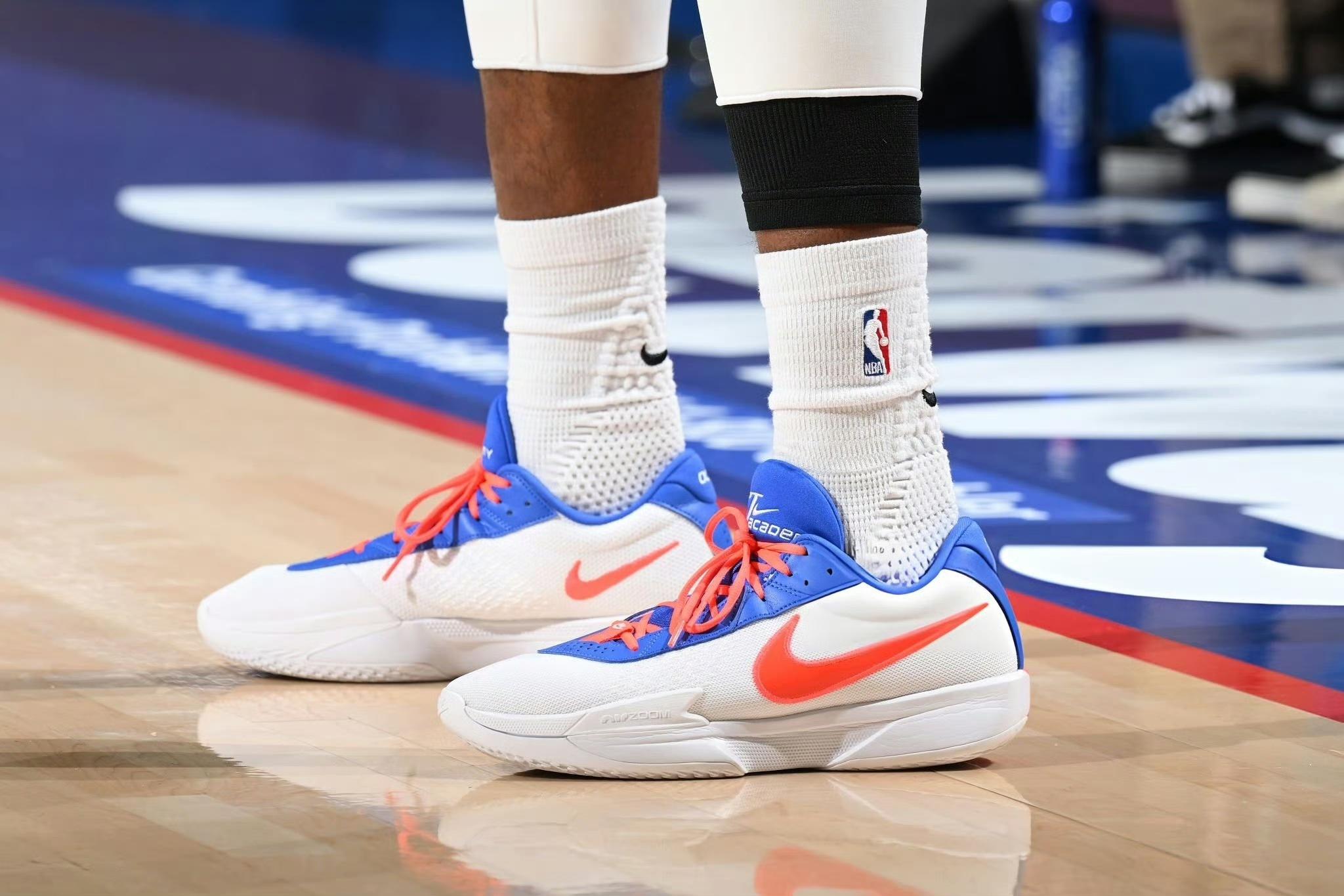 乔治穿着76人配色Cut Academy迎来首秀,得到9分7篮板3助攻