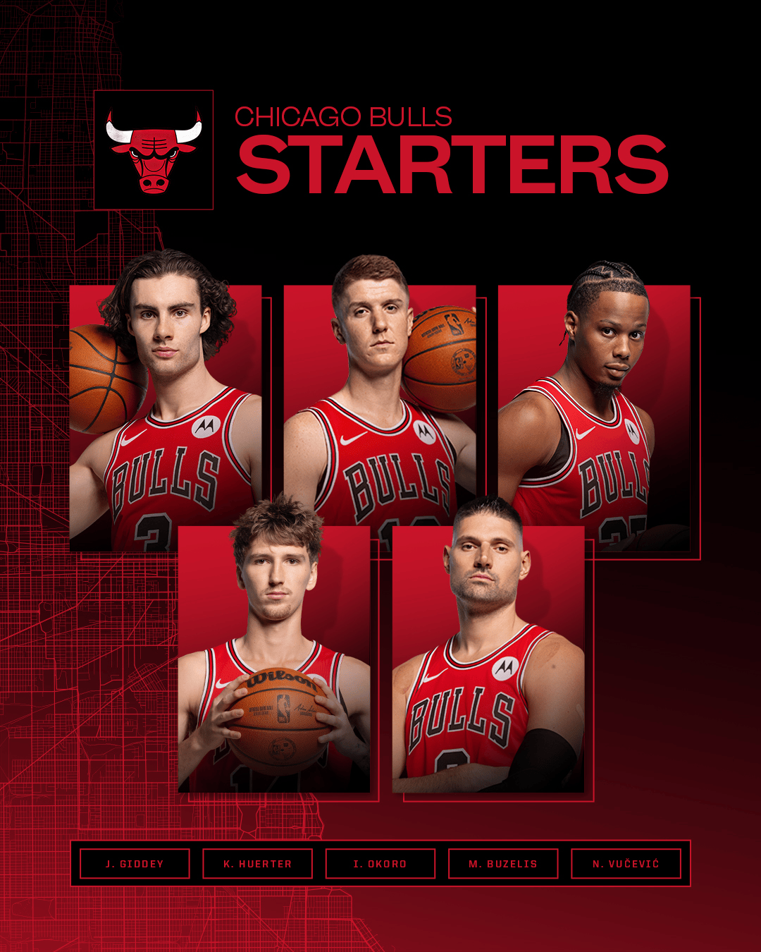公牛首发:吉迪、赫尔特、奥科罗、布泽利斯、武切维奇