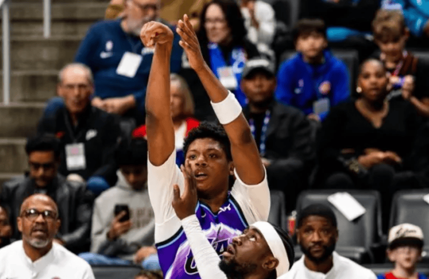 勒维尔高弧度顶投三分再次命中,还剩3分钟活塞领先8分