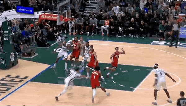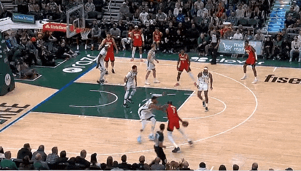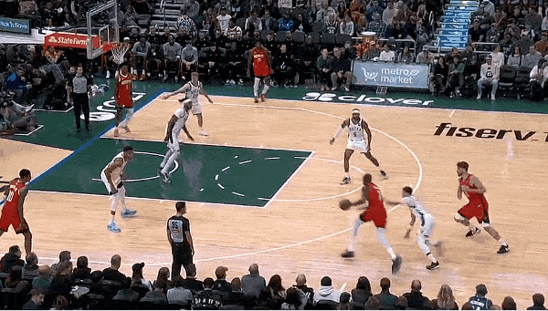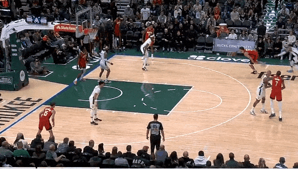 字母哥反击一条龙扣篮,随后面对阿门突破送上封盖