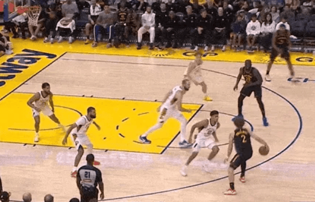 杜兰特借挡拆突破,被贴身防守之下急停中投打进