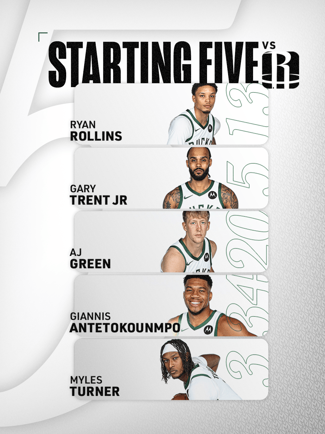 雄鹿首发:阿德托昆博、特纳、罗林斯、AJ-格林、小特伦特
