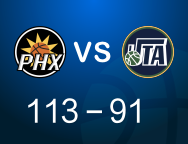 [赛后]爵士91-113太阳,乔治17分8板9助,布克36分5板9助