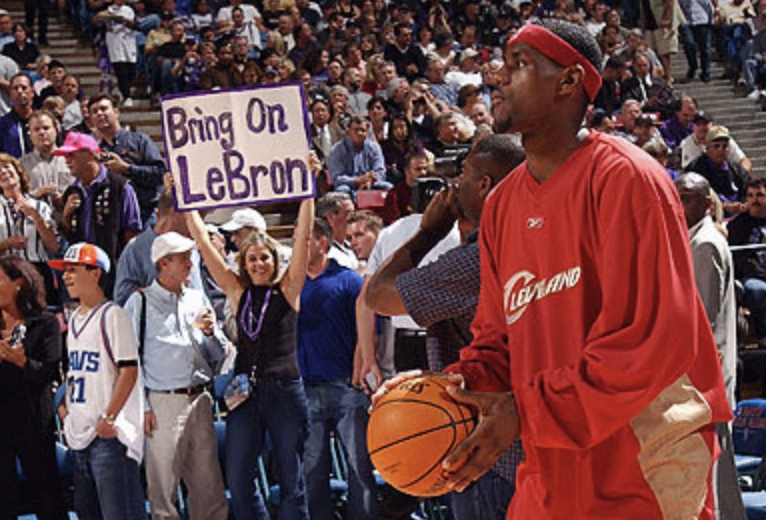 勒布朗冲呀!媒体回顾勒布朗-詹姆斯生涯首秀的赛场照