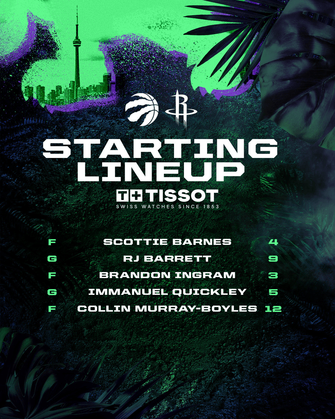 猛龙首发:巴雷特、英格拉姆、巴恩斯、奎克利、博伊尔斯