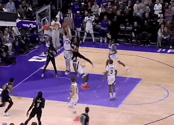 拉文体前变向甩开对手直捣黄龙,上演空中滑翔单臂暴扣