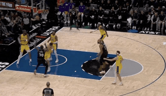 布朗尼运球砸脚直接失误出界,湖人暂落后森林狼7分