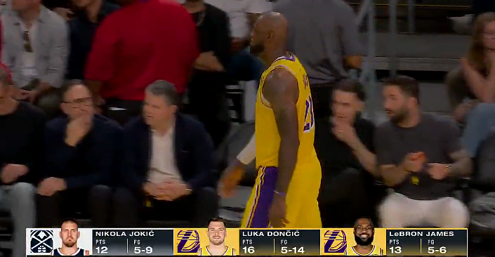 湖人半场61-50领先掘金,东契奇16分&詹姆斯13分&约基奇12分