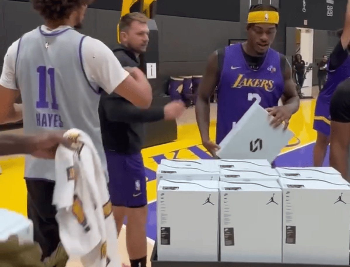 东契奇在湖人训练营中为所有队友送上个人签名鞋Luka4