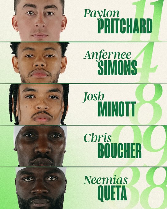 凯尔特人首发:普里查德,西蒙斯,米诺特,布歇和克塔