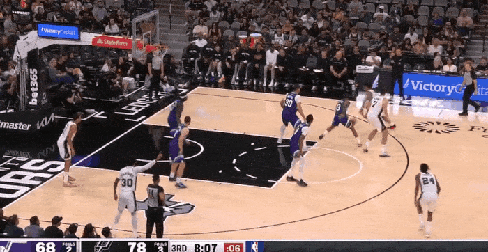 哈珀加速突破分球底角尚帕尼三分命中,马刺领先13分