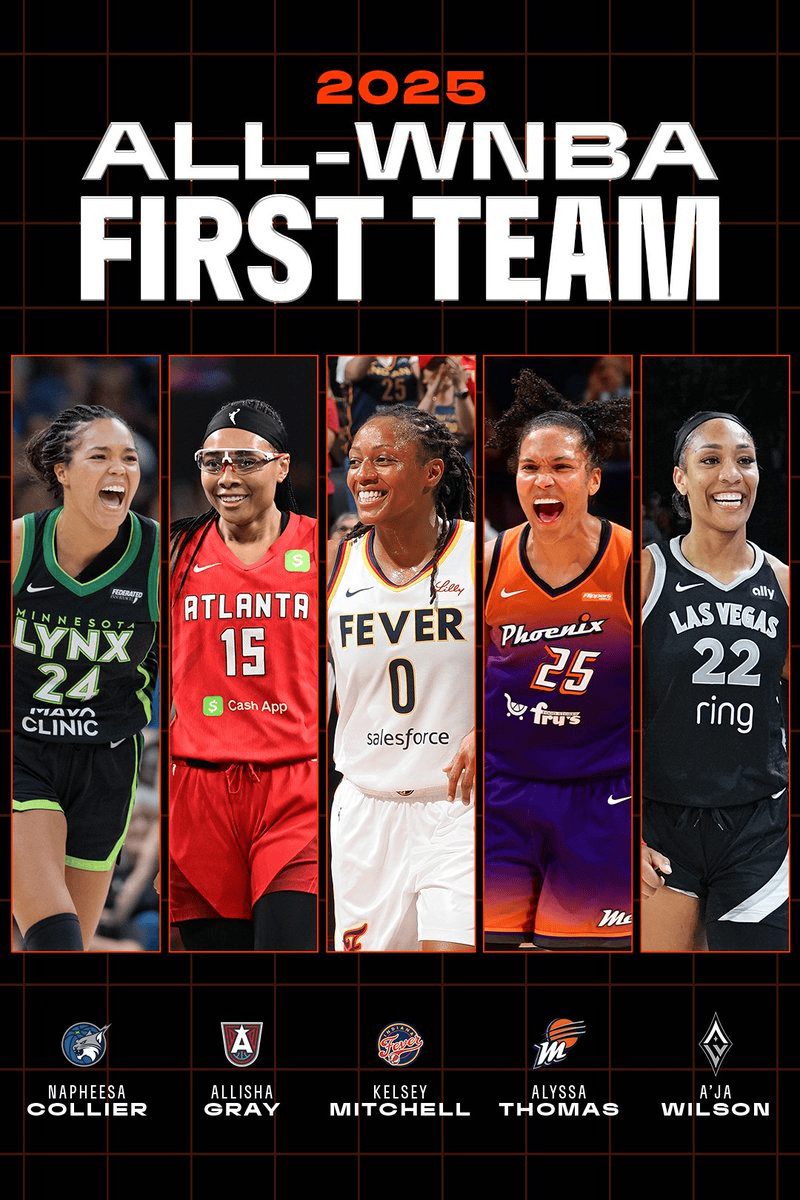 WNBA最佳阵容一阵出炉:阿贾-威尔逊领衔,科利尔在列