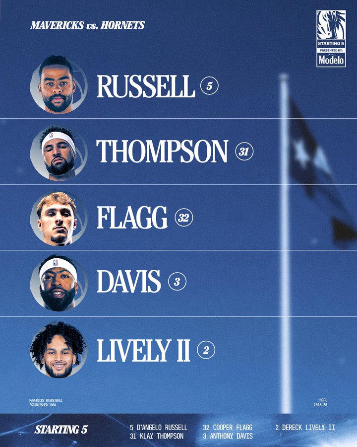 独行侠首发:拉塞尔、克莱、弗拉格、浓眉、莱夫利